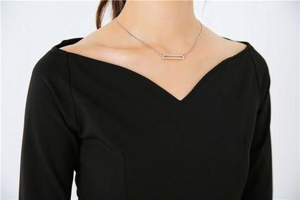 デコルテ魅せ フォーマル 七分袖 シンプル ブラック ミディアム ワンピース