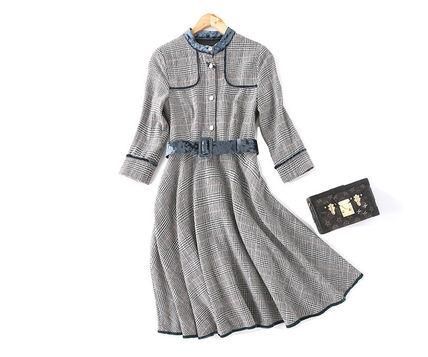 千鳥格子 チェック 7分袖 ベルト付き ショート丈 結婚式 ドレス ワンピース